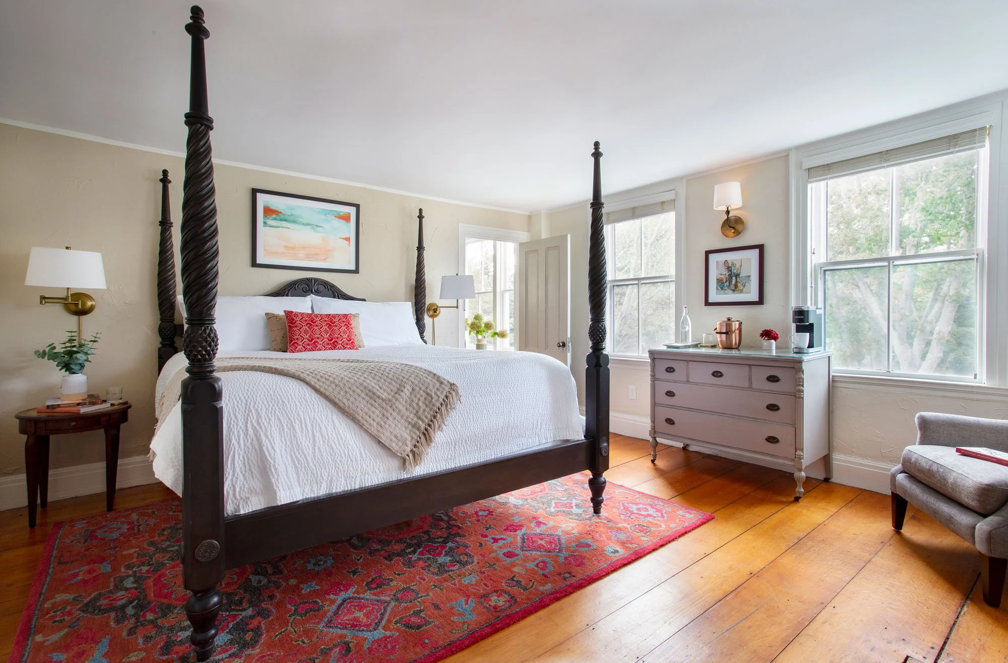 Chapter House offers luxury accommodations that highlight the warmth and character of a charming New England home, with key elements of contemporary hotels. The three-story Main House dates back to 1716.